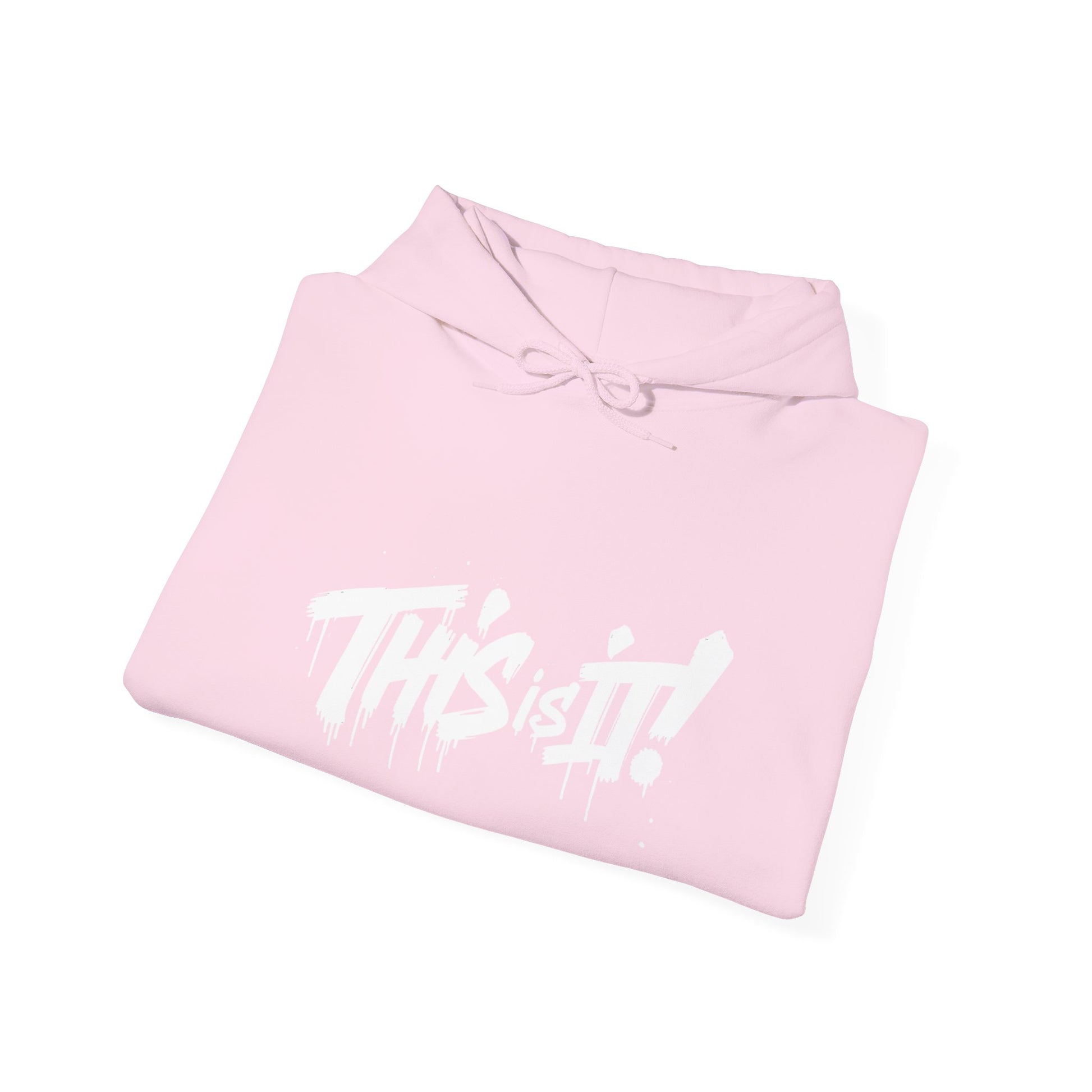 A cozy hoodie featuring the words 'this is it'. Perfect for those seeking a casual and relaxed vibe in their wardrobe. Ideal for adults looking for a comfortable and stylish piece to wear during casual outings or lounging at home. Relevant for holidays, birthdays, or everyday wear.